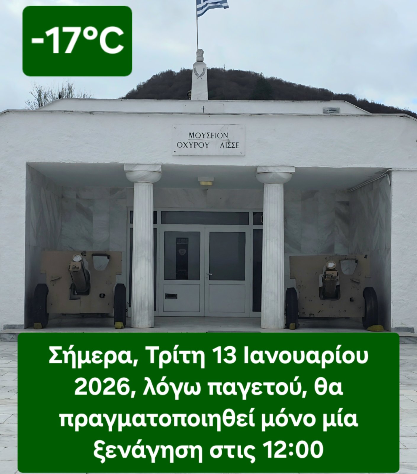 Αύριο Δευτέρα 12 Ιανουαρίου 2026 το Οχυρό ΛΙΣΣΕ θα παραμείνει κλειστό[…]